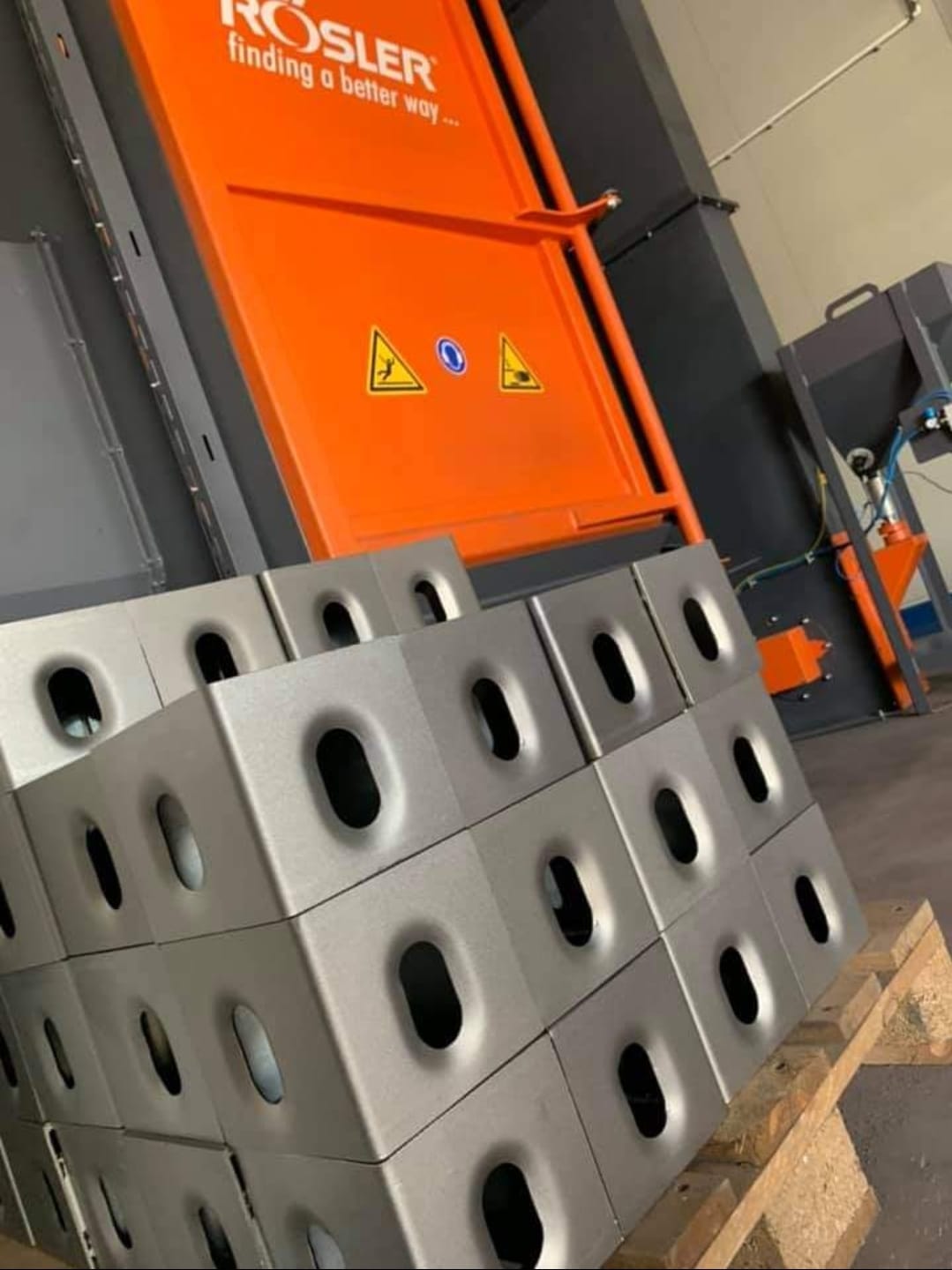 - Preîncălzire — aduce materialul la o temperatură optimă (până la 280 °C) pentru sablare eficientă.