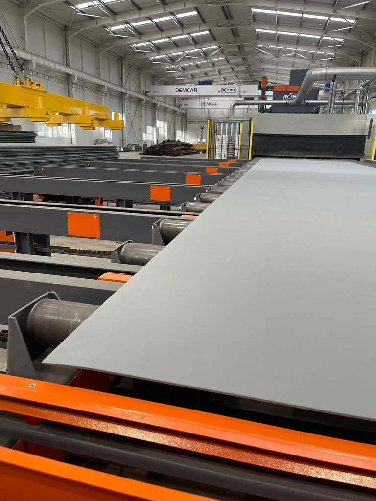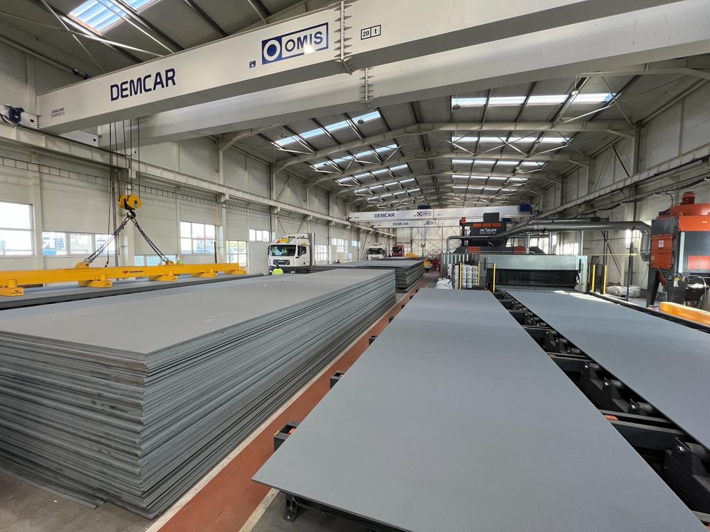 Din 2019 și până în prezent, am făcut un pas decisiv spre automatizare printr-o investiție de 7 milioane EUR într-o hală modernă de 6.000 m², complet echipată cu o linie automată de sablare și pasivare pentru table și profile de oțel, precum și cu patru macarale de 20 de tone dotate cu grinzi magnetice.